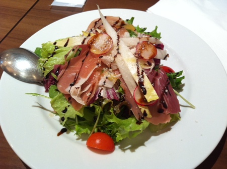 2人でサラダ、ピッツァ2枚、肉料理をオーダーしました。