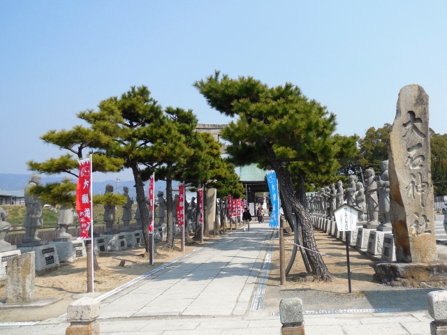 大石神社の鳥居さんをくぐると、参道の両側に四十七義士の像が立ち並んでいました。境内は自由にお参りでき、宝物館や大石良雄宅跡の見学は共通券を買いました。広く明るい感じの境内でした。参拝者のための駐車場もありました。