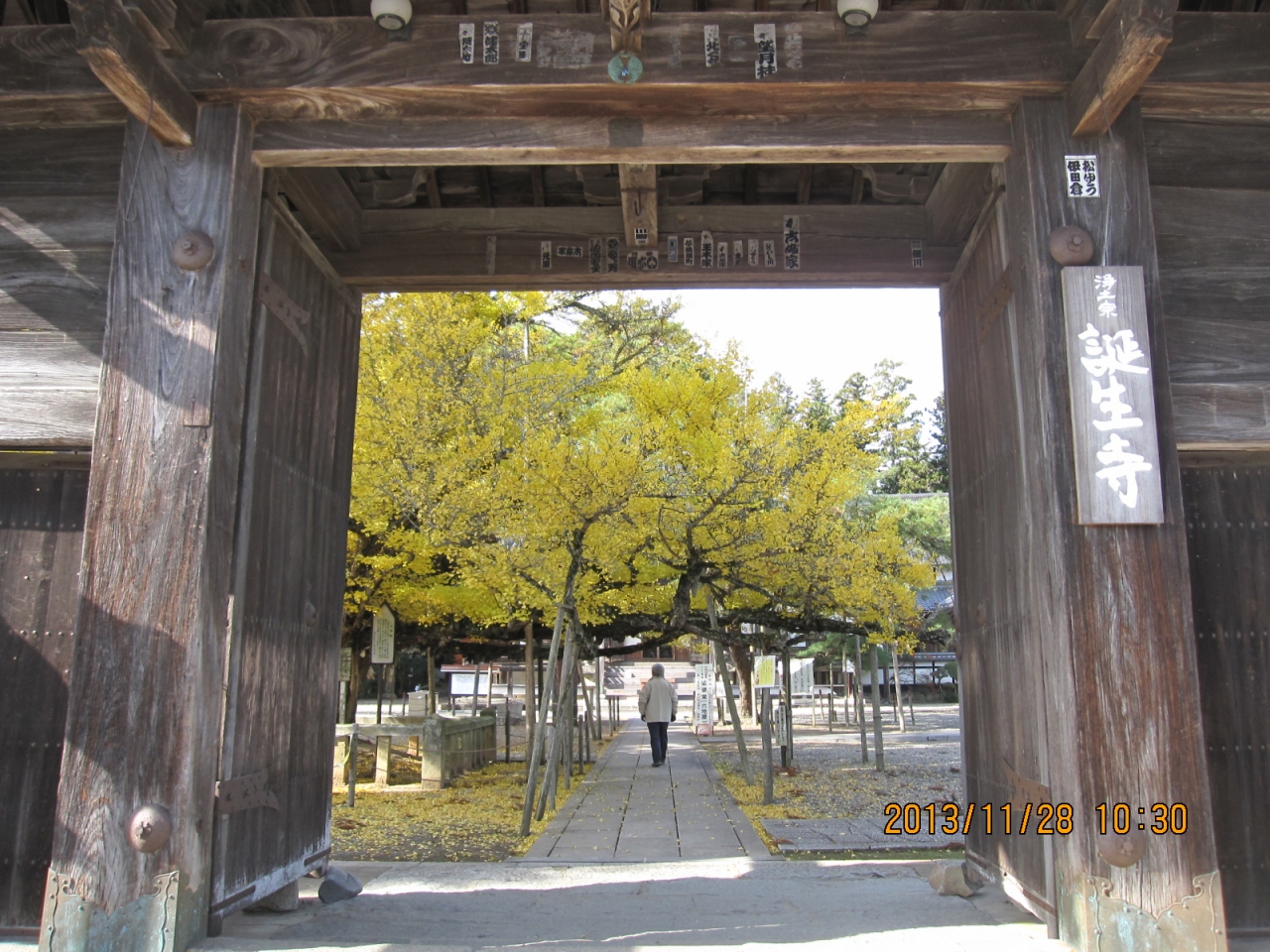 誕生寺は、熊谷直実が法然上人の命を奉じて上人誕生の旧邸を寺院に改めたものだそうです。山門を入って境内には、逆木の大イチョウ・丁度紅葉の盛りでした。正面には阿弥陀堂、左には上人関連の品が展示されている宝物館、裏側には法然上人の産湯の井戸がありました。風格のあるお寺ですが、訪れる人が少ないせいか侘しく感じました。