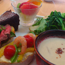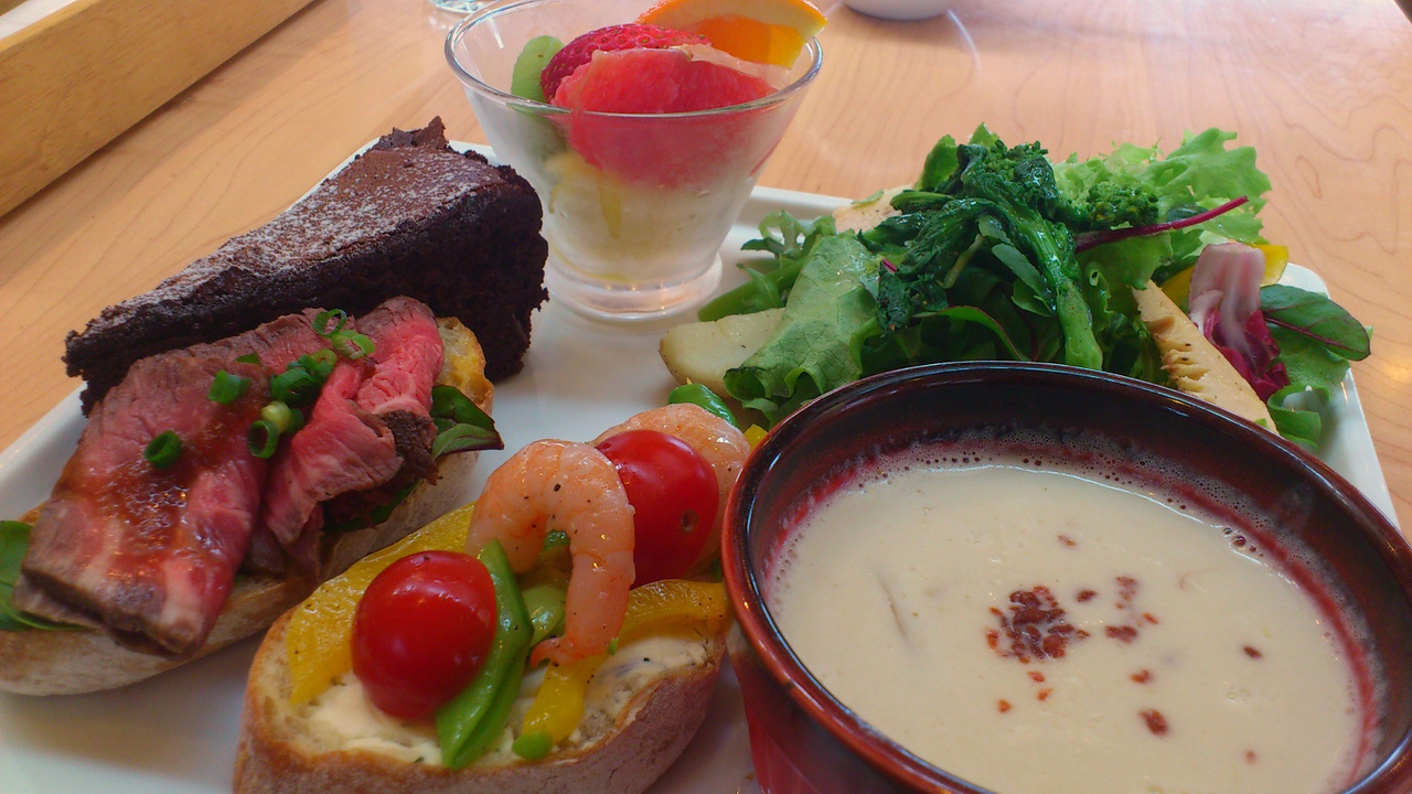 ガーデンサンド 1490円とセットのドリンクでフレッシュハーブティー 350円を頂きました。見た目も美しくお味は期待以上でした。特にデザートのガトーショコラは濃厚!ハーブティーもポットサービスで、カップ二杯分は余裕であり嬉しかったです。