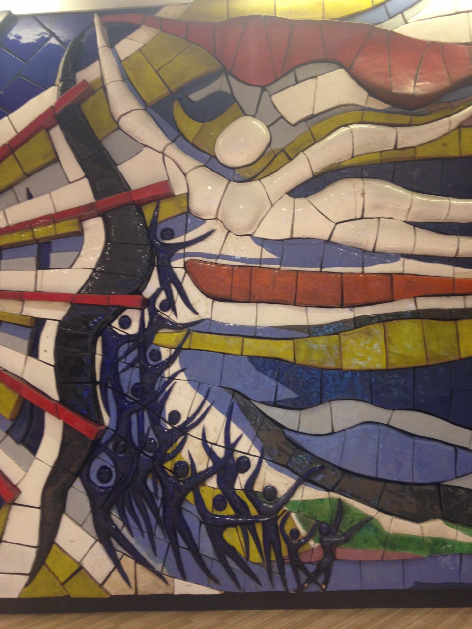 1階レストラン街には岡本太郎さんの大きな作品が展示されていて