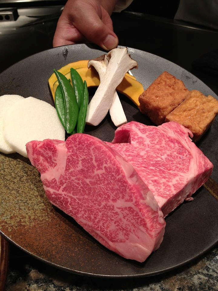 目の前にやってきたのは、刺しのキレイに入った神戸牛。