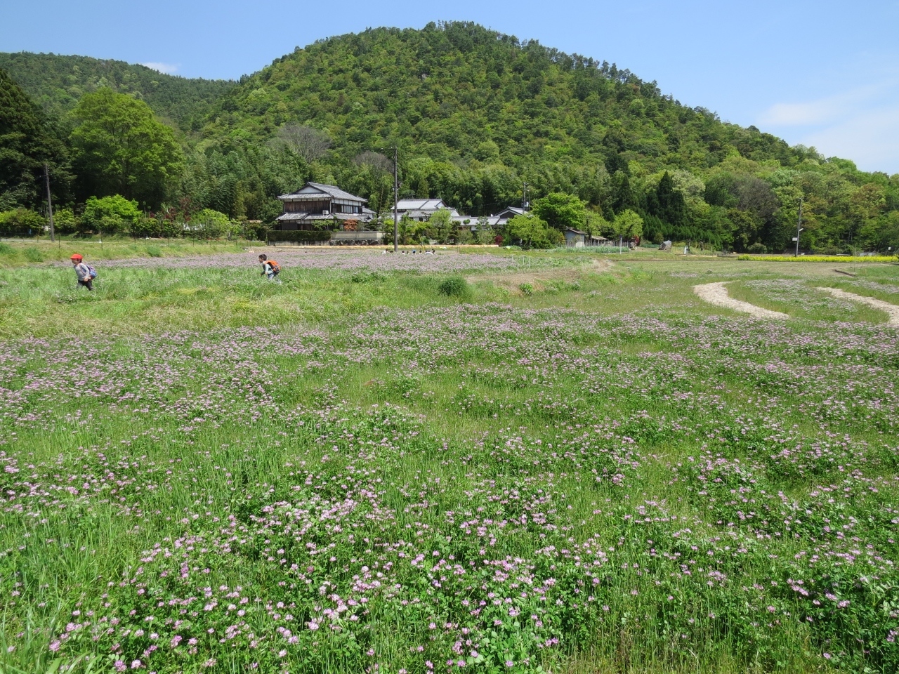 毎年4月中旬頃、京都市右京区役所主催の「れんげを摘む会」が催されます。場所は兒神社の裏一帯に広がる田んぼと畑。この時期このあたりはれんげが広い範囲に咲き誇ります。近くの幼稚園児達も摘みに来ていました。この日は特別に畑に入って摘んで持って帰ることが出来ます。春の楽しみです。