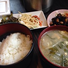お惣菜にごはん、お味噌汁が食べ放題のランチは、おかずが1-3品の間で選べて、それぞれ680、780、880円です。