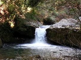 川の水が透き通って綺麗。最初、車で川近くの細い道を滝を探して走ったのですが見つからず。駐車場に車を停めて散策しました。滝は徒歩でないと見れないようです。