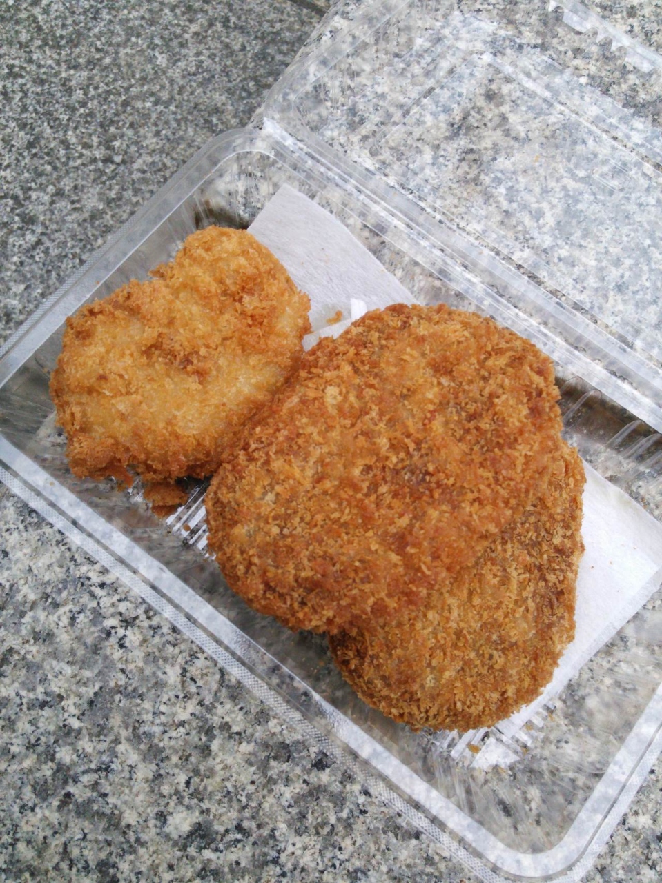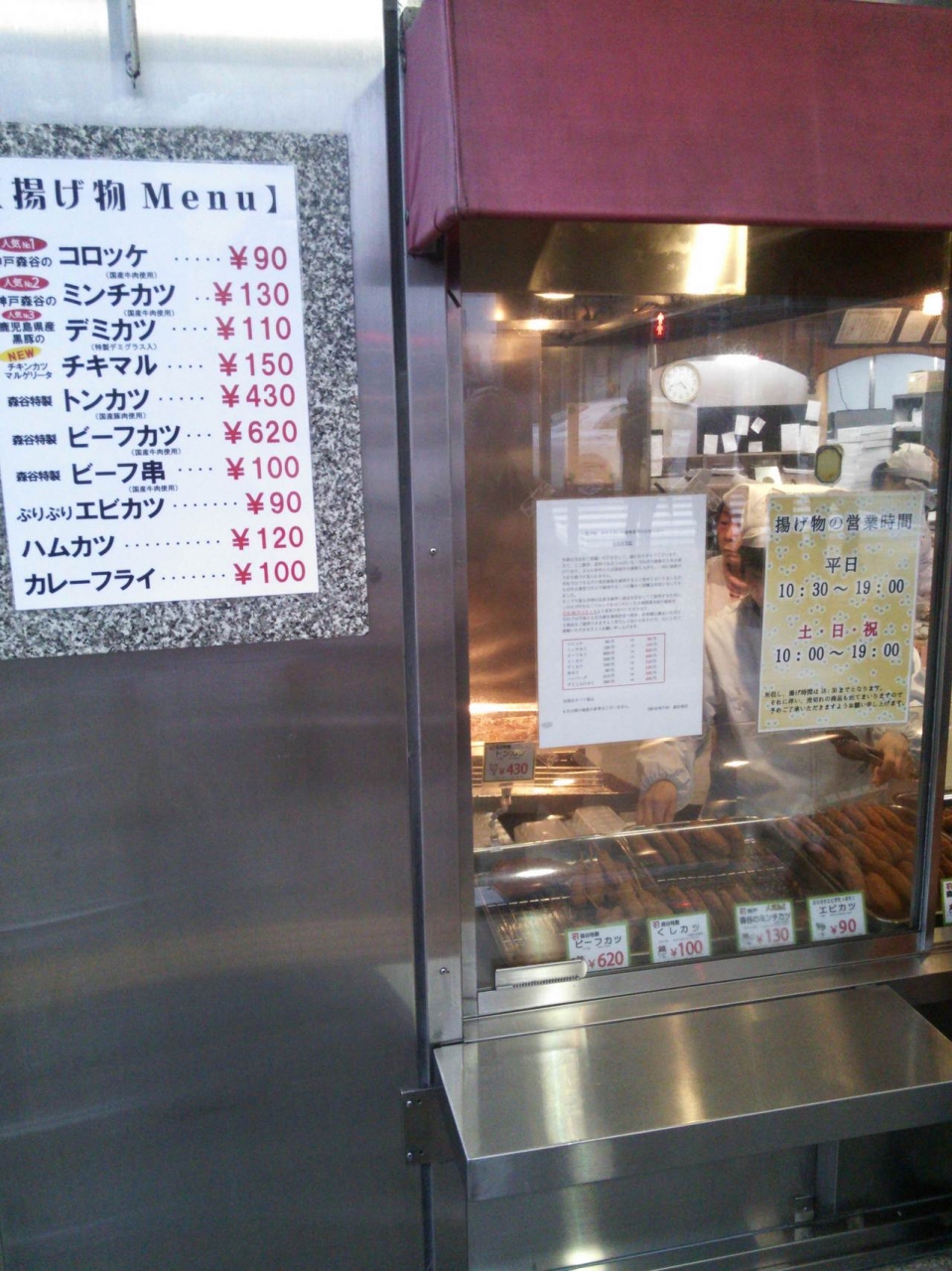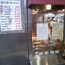 あつあつのコロッケ、メンチはとても美味しい。また、海老カツやハムカツなどもあります。観光で歩いて、お腹がすいたらコロッケを食べるのもグットですね。