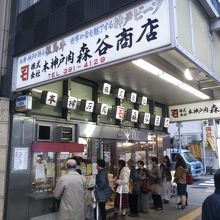 普通のお肉屋さんでもありますが、神戸牛を使った揚げたてのコロッケ、メンチを販売している人気店です。