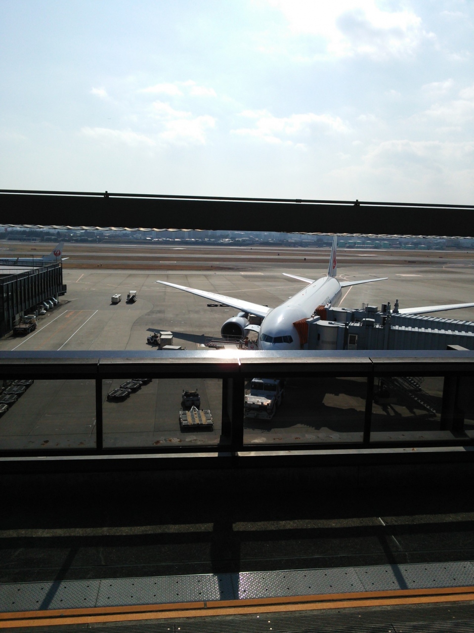 空港ビル4階にあります。4階にはおしゃれな家具屋さんのアクタスも入っていますので時間があるときにはぶらっとできます。アクタスの隣には無料の展望デッキがあって、とても視界が開けて気持ちいいです。ベンチもあるので便利ですが、夏は日陰がないので厳しいかも。すごいカメラを持っている人達がたくさんいて、撮影スポットなんだと実感しました。