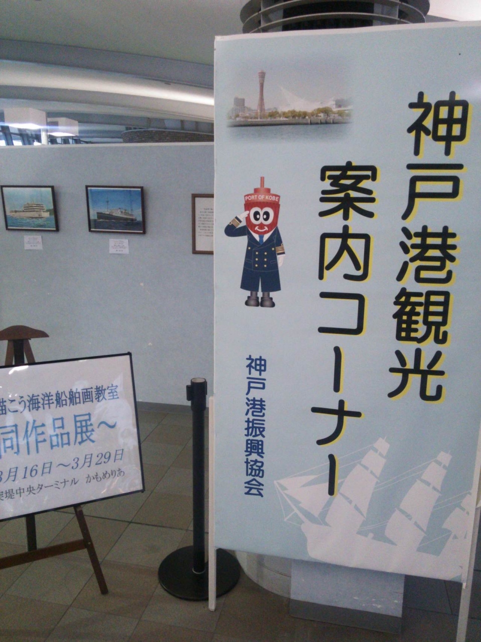 2階には、神戸港の観光案内コーナーもあり、良くできた大型スチームタンカーの模型船の展示があります。