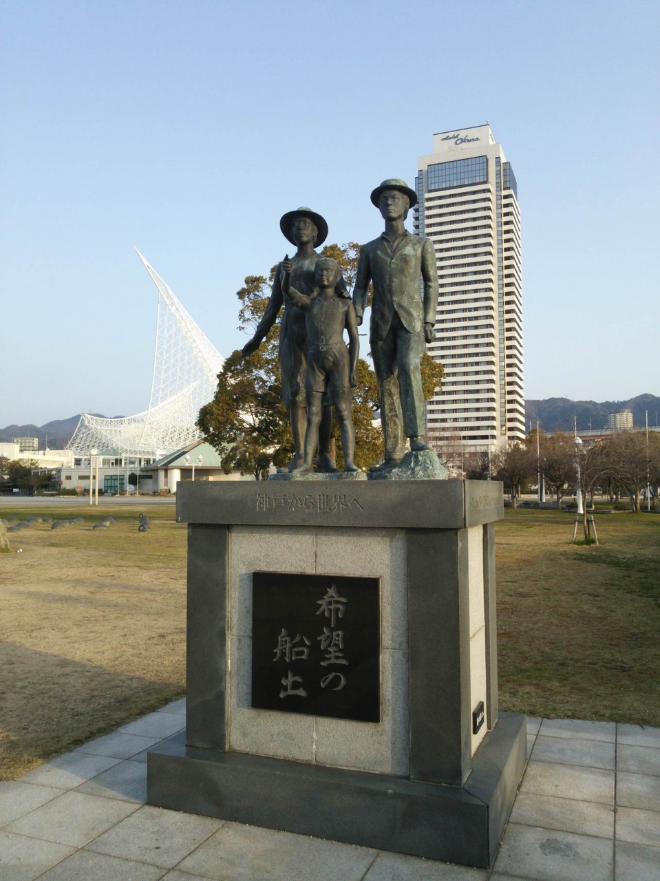 「希望の船出」と刻まれた碑には、明治の頃の南米ブラジル移民の人々の夢と期待を持った家族を銅像に記したものだとおもいます。
