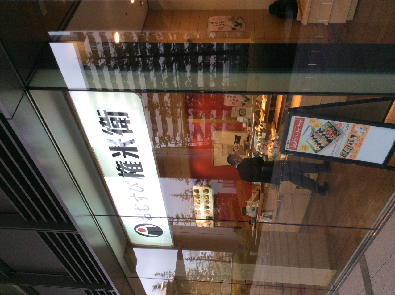 大崎駅そばのニューシテイビルの三階にある店舗で、ここにはイートインコーナーは、ありません。おむすび権兵衛の商品は、コンビニのおにぎりと比べたら、結構高いですが、
