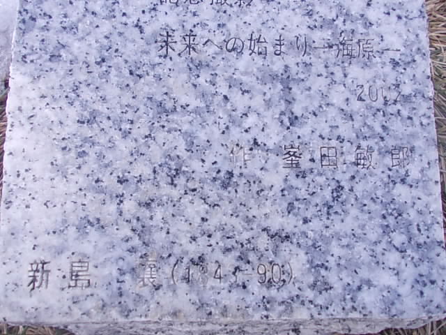 函館ベイエリアを代表する観光地である赤レンガ倉庫群のすぐ傍にある、小さなブロンズ像ですが、これは実は峯田敏郎という人物の「未来への始まりー海原」というタイトルの作品として屋外展示されているものです。写真などでイメージされる新島襄と比較すると、ちょっと可愛らしい顔なので、癒される雰囲気です。尚、現地の観光客の動向を見ていると、これを新島襄海外渡航の地碑と勘違いしている会話を耳にしましたが、こちらの方はもっと奥に立派な記念碑で建立されていますので、お間違えの無いようにご注意下さい。