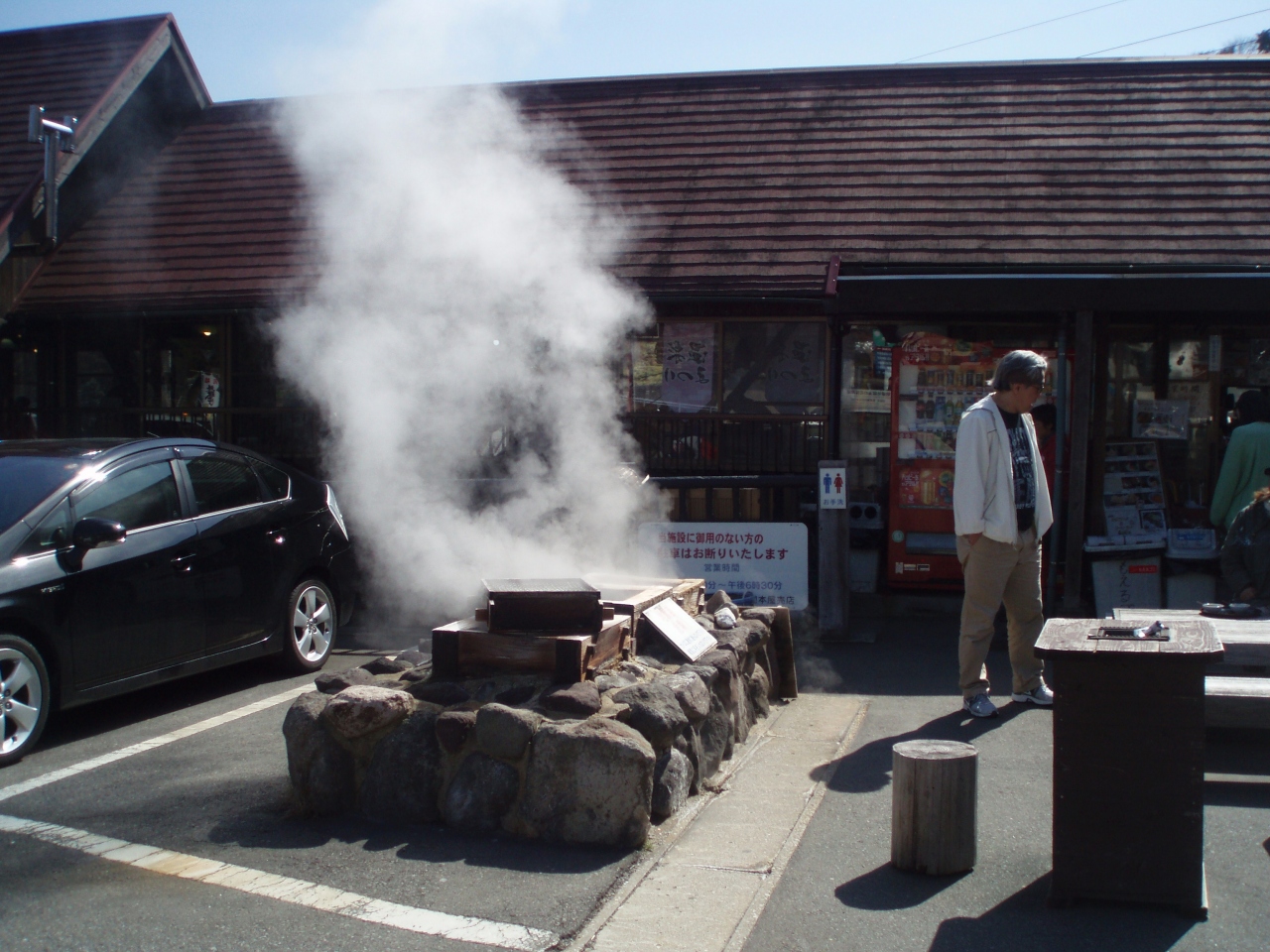 明礬温泉で蒸された地獄蒸しプリンが有名な岡田屋に立ち寄りました。