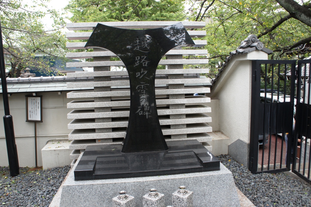麻布の善福寺の墓所の中で見かけたのが、1980年に56歳で亡くなった越路吹雪の歌碑でした。まるでカクテルドレスのような形をしています。碑に刻まれているのは、代表曲の一つ「愛の賛歌」。よく見ると、越路吹雪が両手を広げ歌い上げているようにも見えます。ところで、お墓自体は別の場所にあるそうです。何でまた、こちらにあるのか、それはナゾのままです。