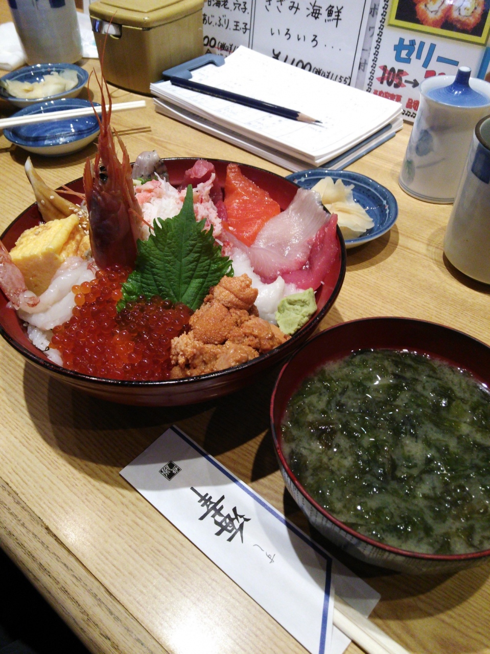 私は特選海鮮丼1,800円を注文しました。味噌汁付です。