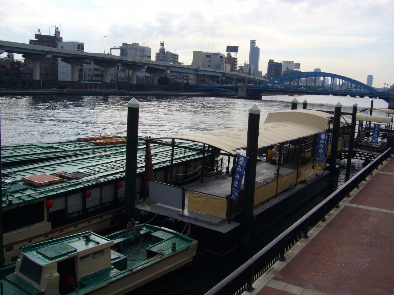 隅田川沿いを散策、出発点は吾妻橋。遊歩道も整備されていて歩きやすく、なんと言ってもスカイツリーやアサヒビールの有名な黄金の巨大なモニュメントが見えます。駒形橋の特徴は優美な曲線を描いたアーチ橋、景観にも優れ見応えがあります。