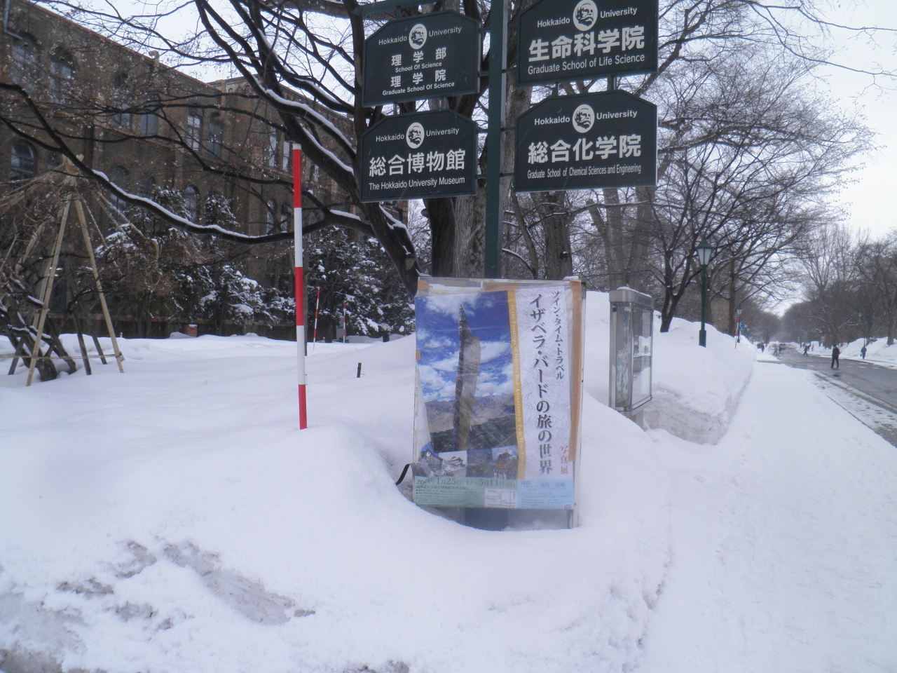 札幌駅から歩いて北海道大学のキャンパスを散策しました。 3月の春休みだし土曜日なのでキャンパスは閑散としていました。 南のほうでは桜の便りが聞こえてくるのに、一面雪景色でした。 博物館は開館していて、写真展のイザベラ・バードの旅の世界展をやっていて興味深いものでした。