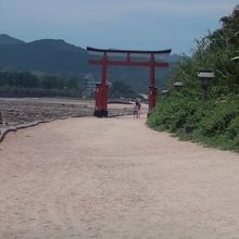 本殿はそれを越えてもう少し砂浜を歩いていくとつきます。