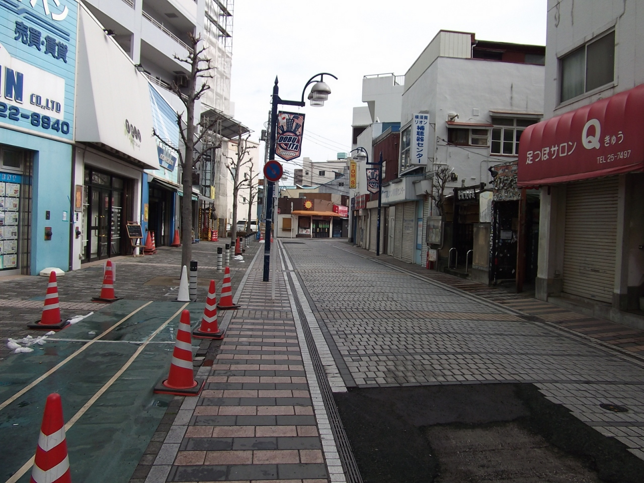 汐入桟橋から歩いて5分。車の行き来がぎりぎりぐらいの道幅に土産屋、レストラン、パブなどが立ち並んでいる。