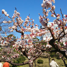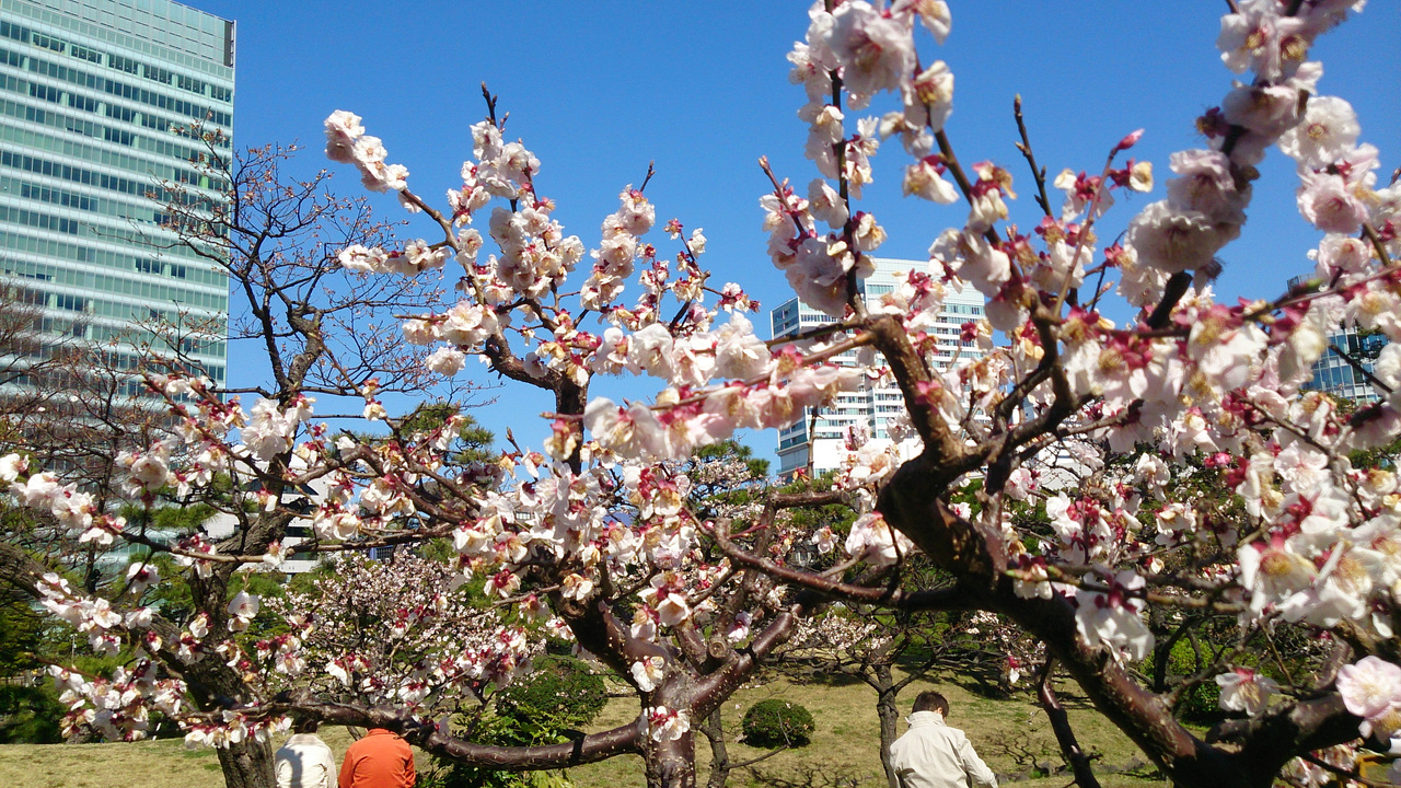 JR浜松町駅北口から徒歩1分だが間違って南口から出てしまいぐるっと周りを回ることになってしまいました。今も残る大名庭園の最古のもののひとつらしい。回遊式泉水庭園で広い池を中心に西湖の堤や大山と言われる築山、中島など見事に配されていて季節毎に花が咲き都会のオアシスとなっています。梅の花が盛りを過ぎていましたがユキヤナギが咲き始め、この先さくら、ツツジ、藤と咲いていくようです。池には鳥も多く居ました。気軽に行けるところです。