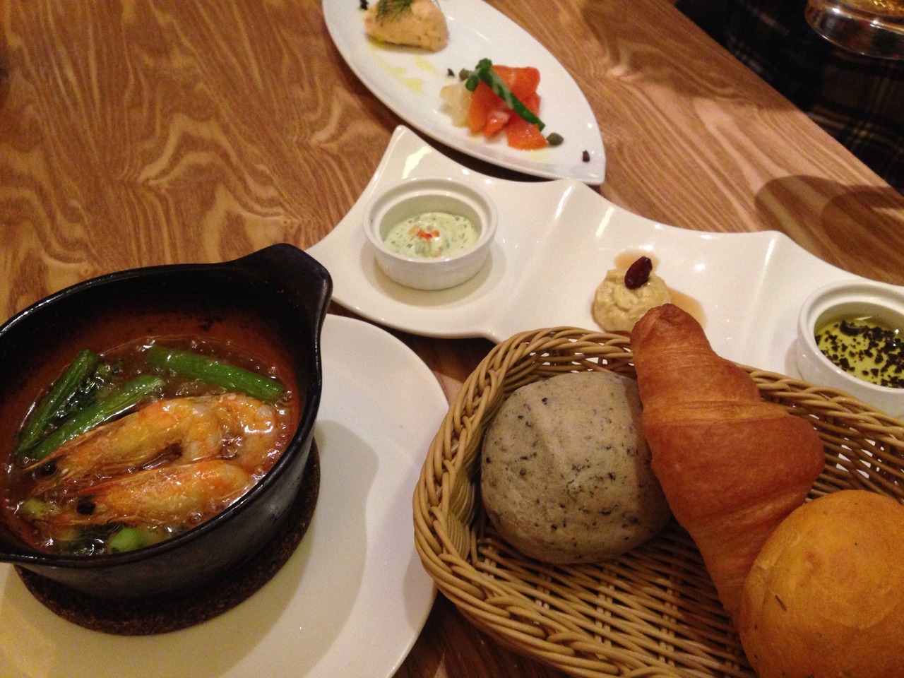ディナーで前菜とパンビュッフェ、メインつきの1950円のセットを注文しました。