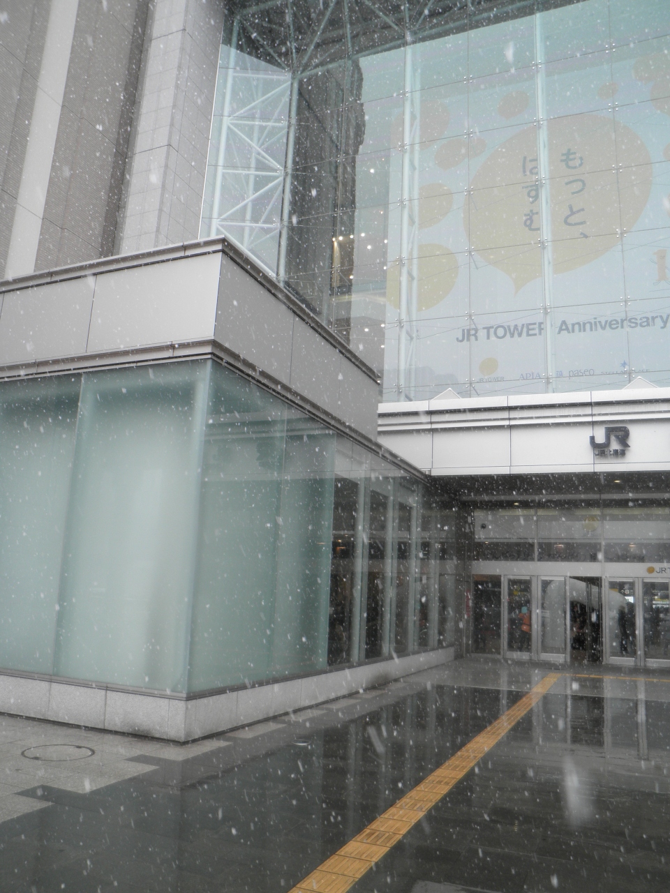 JR札幌駅南口にあるオブジェ 妙夢は、鍋の取っ手のような形をした白い石の作品です。 このオブジェは大きいので、南口の外からでも見ることができます。 訪れたときには、多くの人が待ち合わせをしていました。 ただ、人が多いのと腰掛けるところが少ないのがちょっとよくないと思います。