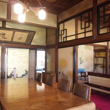 外観はそれほどでもないように感じたのですが、中に入ってびっくり。豪華なシャンデリアや襖絵、天井から建具からあらゆるところにこだわりを感じる意匠が施されています。