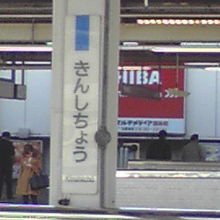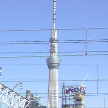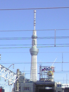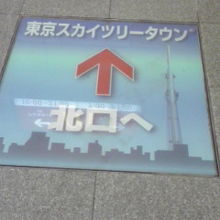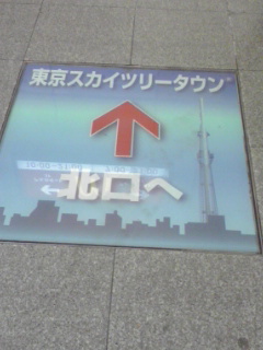 JR錦糸町駅のホームからスカイツリーがドーーーンと目の前にそびえたって見えます。ホームを降りて改札口に向かう床にはスカイツリータウンへの案内が埋め込まれています。地方から来た方には親切な案内です。錦糸町の街の見所MAPも置いてありました。