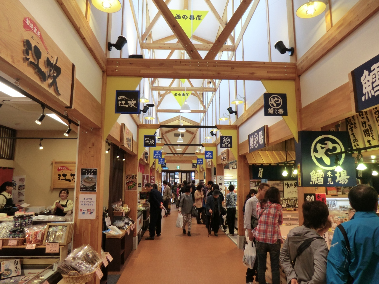 氷見港の近くに作られたショッピングゾーンで、お寿司や牛肉、海の幸など氷見の名産が揃ったレストランやお土産物屋が充実しています。