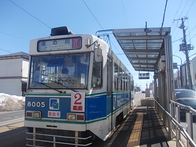 函館市電は2013年で開業百周年を迎えましたので、各車両のヘッド部分には、漢数字の百をあしらった方向幕などが見られたのですが、どうやらこの表記は2014年3月末をもって終了してしまうそうです。このクチコミをご覧になる多くの方にとっては、もう見られなくなってしまってからの情報になってしまうかと思いますが、記憶を留めておくためにも、こちらのクチコミを記させて頂きたいと思います。