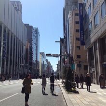 築地から15分ほどで銀座の中心地に着きます。中央通りは歩行者天国だったので、普段は車の忙しく走る道をのんびりと歩くことが出来て、時間の流れもゆっくり感じられました。