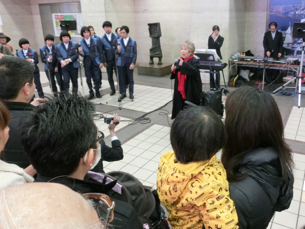 そごう入り口近くの広場で、宮城さんの指揮で、生徒たちのコーラスもあった。