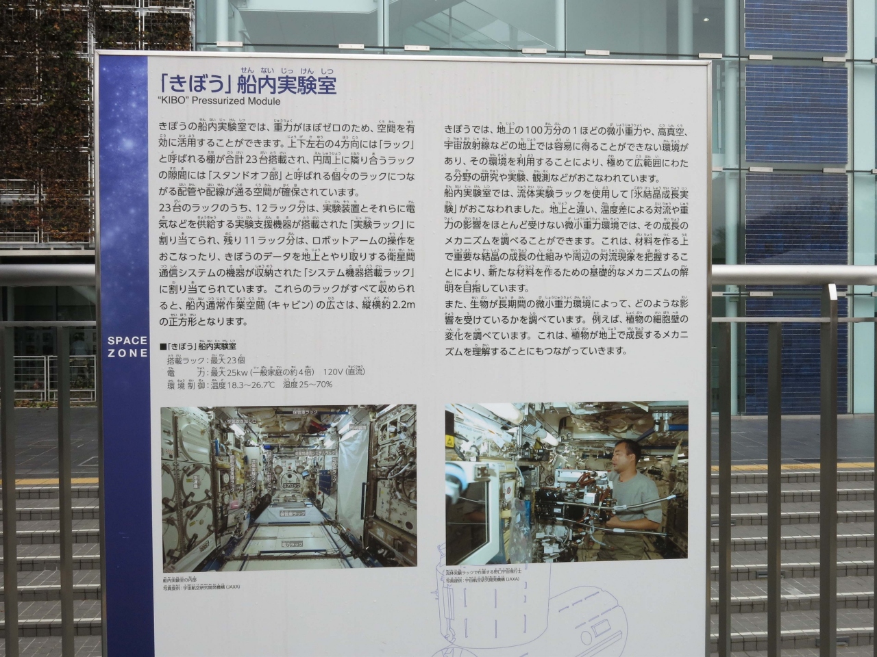 TVで見たことのある”きぼう”が展示されていました。確か宇宙ステーションでの実験室だったような。丸ごと展示されていて、階段を登ると、船内をガラス越しで