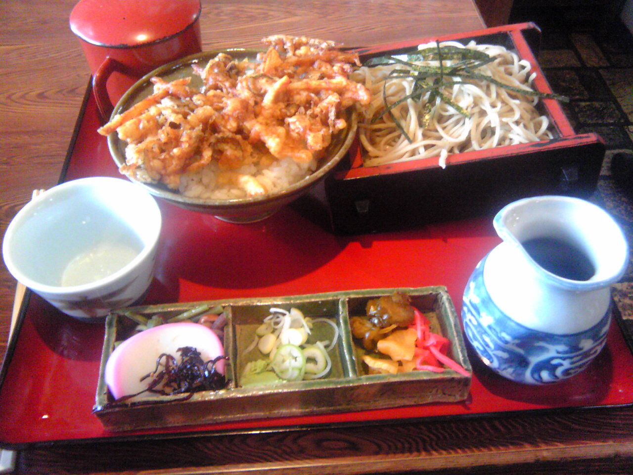 天丼とお蕎麦のセットを食べてみましたが,どちらかというと天丼主体で,お蕎麦は付合せのようでした.