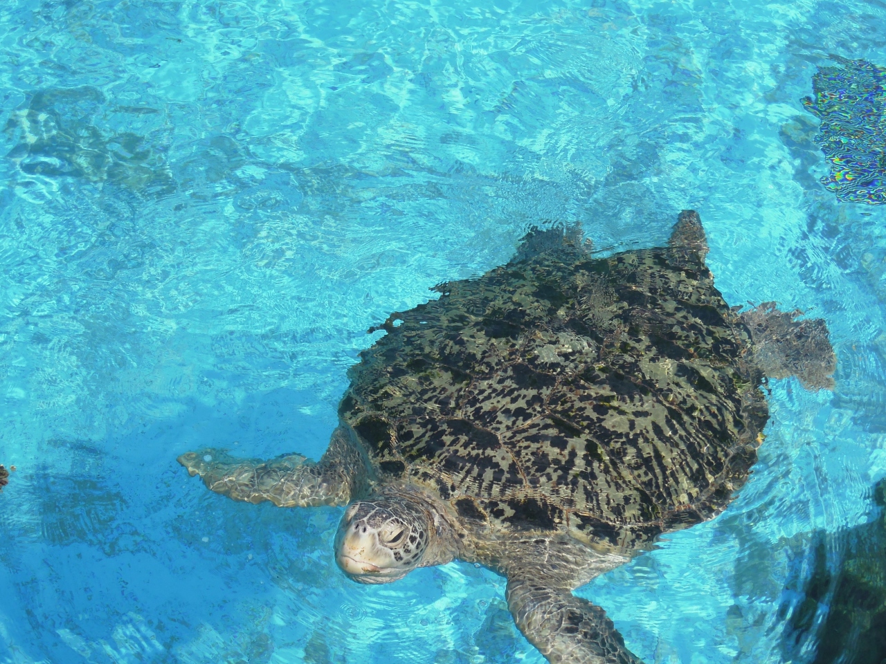 11時からオキちゃん劇場でイルカに癒されたら、そのまま、のんびりとウミガメ館へ移動すると、給餌タイムにガチ合います。