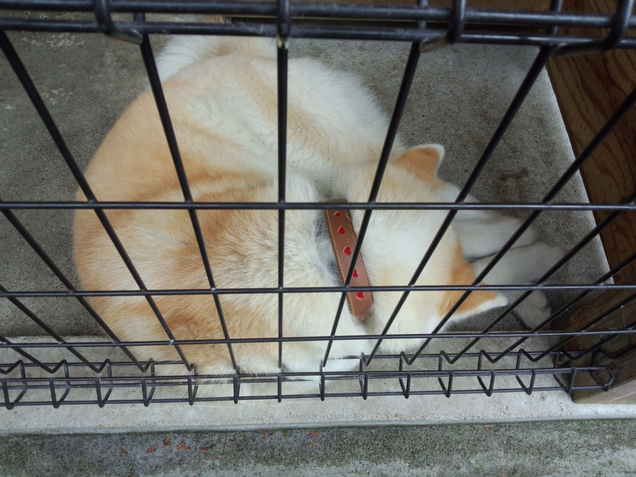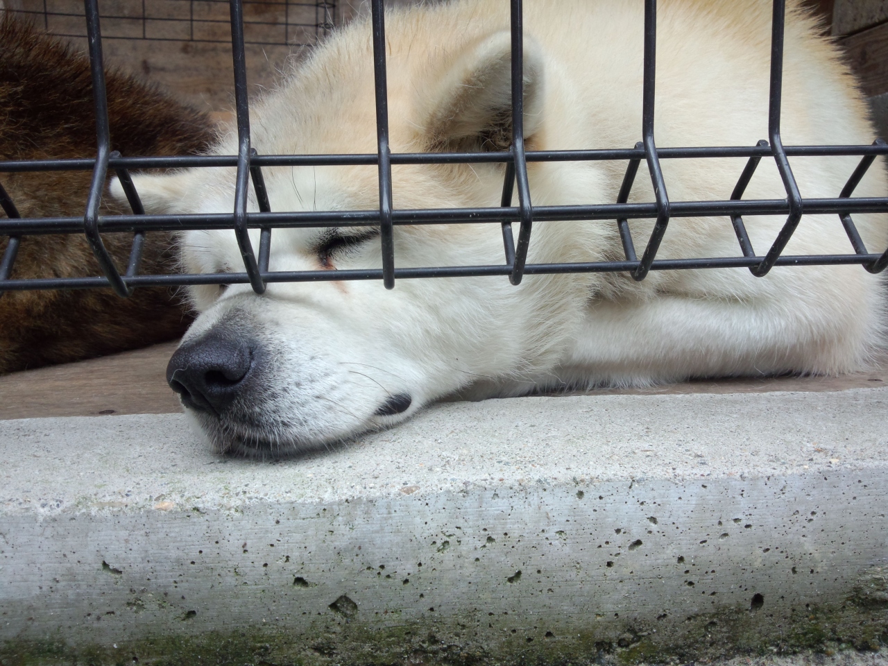 小屋を除いた時は2匹の子犬が寝ていまいしたが、しばらく眺めているとむっくり起き上り、素朴な可愛い顔を見せてくれました!なんとも癒される天然記念物です。