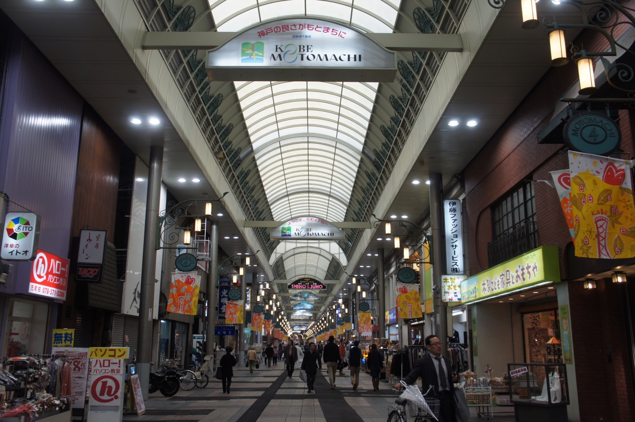 神戸元町商店街は、元町駅すぐの大丸側に入口があります。元町1番街から始まって、中華街を脇に見て、神戸駅の方向に元町6丁目まで、東西1.2kmの長さです。明治初期の開港の頃からという老舗もあって、そうしたお店を探しながら歩くのも楽しい。今回は、一気に通して歩いてみましたが、ぶらぶら歩きにはちょうどいい長さかなと思います。