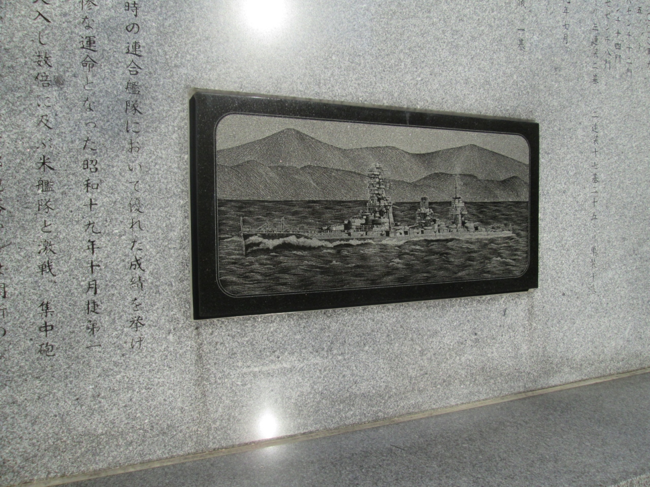 - 碑の正面には海軍記章、艦影や戦歴が刻まれ、裏面には戦死者の御芳名が刻まれている立派なものです
