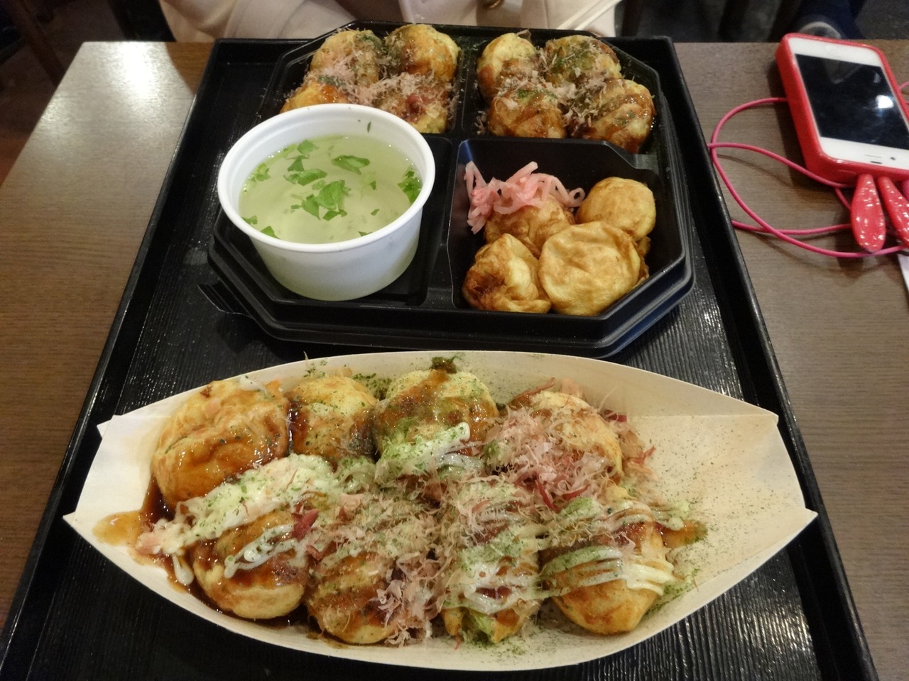 大きいたこが入っていて、生地はふわっと柔らかくおいしいです。定番の味の他にもちチーズや明石焼きもありました。また食べたくなる味です。