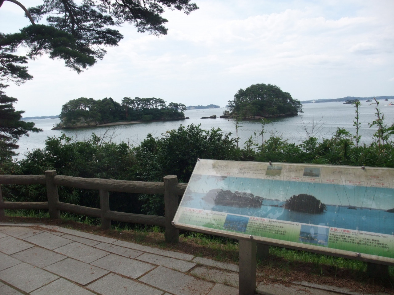 見事な赤松の間から松島湾を眺めながら散策路をたどります。さすが松島、松と岩と、海の調和が素晴らしいです。