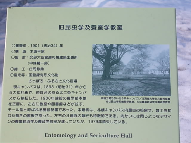 私はここを3月下旬の残雪期に訪れましたが、青空と白い残雪、そしてライトグリーンを基調としたこちらの建物の色のコントラストがとても美しく、近代建築としての魅力を存分に楽しむことが出来ました。すぐ近くに現在の農学部もあり、重厚な雰囲気の現農学部と、端麗で美しいこちらの建築との対比も楽しむことが出来ました。