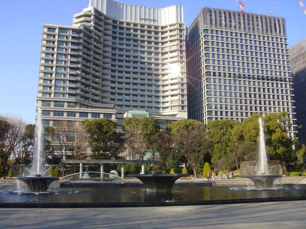この噴水公園は天皇皇后陛下のご成婚を記念して造られたそうで、正面にあるパレスホテルとは、雰囲気がよく合います。また公園の横には、ガラス張りの建物があり、レストランになっています。クリスマスの頃には、噴水がライトアップされるイベントもあるようです。