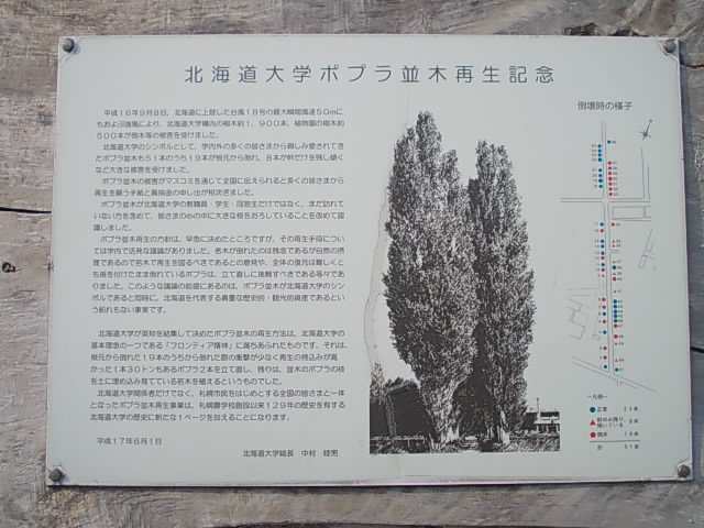 北大構内の観光名所、としてどなたでも連想するのがやはりこちらのポプラ並木ですが、周知のように、2004年の台風直撃で、相当な被害を受けました。しかしあれから約10年経過した時期に訪れてみましたが、修復作業も一定の成果が得られているという印象で、少し安心しました。尚、名目的には立入禁止となっていて、特に冬季は除雪などは全くされていませんので、観光地という意識で訪れると、ちょっとがっかりしてしまうかもしれませんのでご注意下さい。