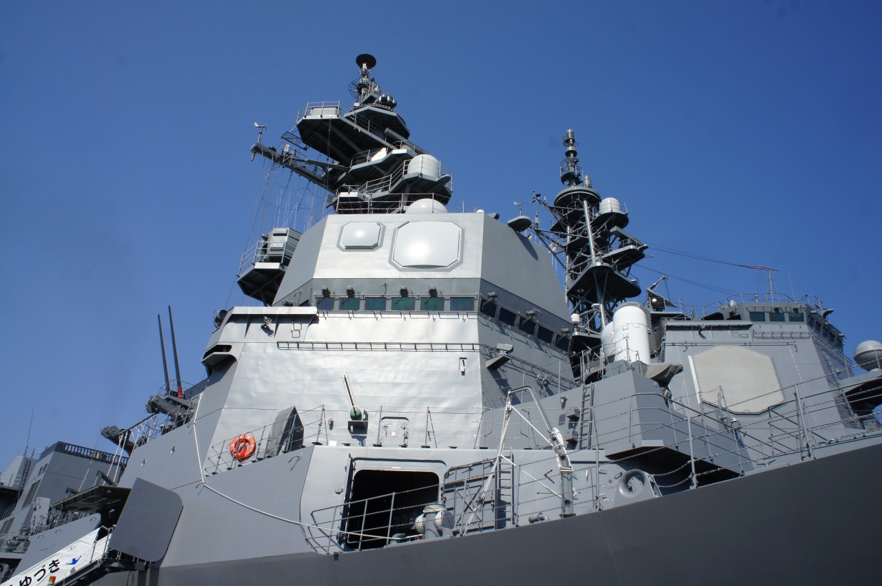 海上自衛隊の舞鶴地方隊は、土日の見学日があって、海軍記念館、北吸桟橋、第23航空隊の三か所でやっています。ただ、一番人気はこの北吸桟橋の艦船見学でしょう。停泊している最新鋭のイージス艦は、高性能のレーダーで、防衛能力は世界一。艦船への搭乗ができるのは、年に1~2回ということで、桟橋から見上げるだけですが、30mほどの高さの船をまじかで見るとその大きさに圧倒されてしまいます。