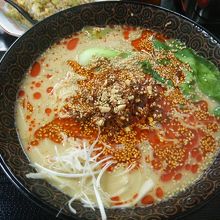 坦々麺の定番であるミンチはしっかり炒めているようで香ばしく、刻みピーナッツが歯ごたえもおいしかった。