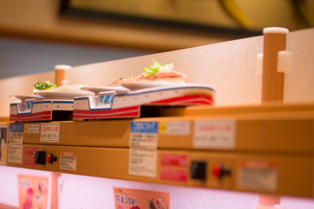 値段はお酒込みの値段なので、お寿司自体は回転寿司らしくそこそこリーズナブルだと思います。表題どおり回っているお寿司のほかに、画面から自分でオーダーすると、特急便がやってきます。なかなかユニークなシステム。空港なのでジャンボジェット機とかだともっとよいかもですね(笑)。