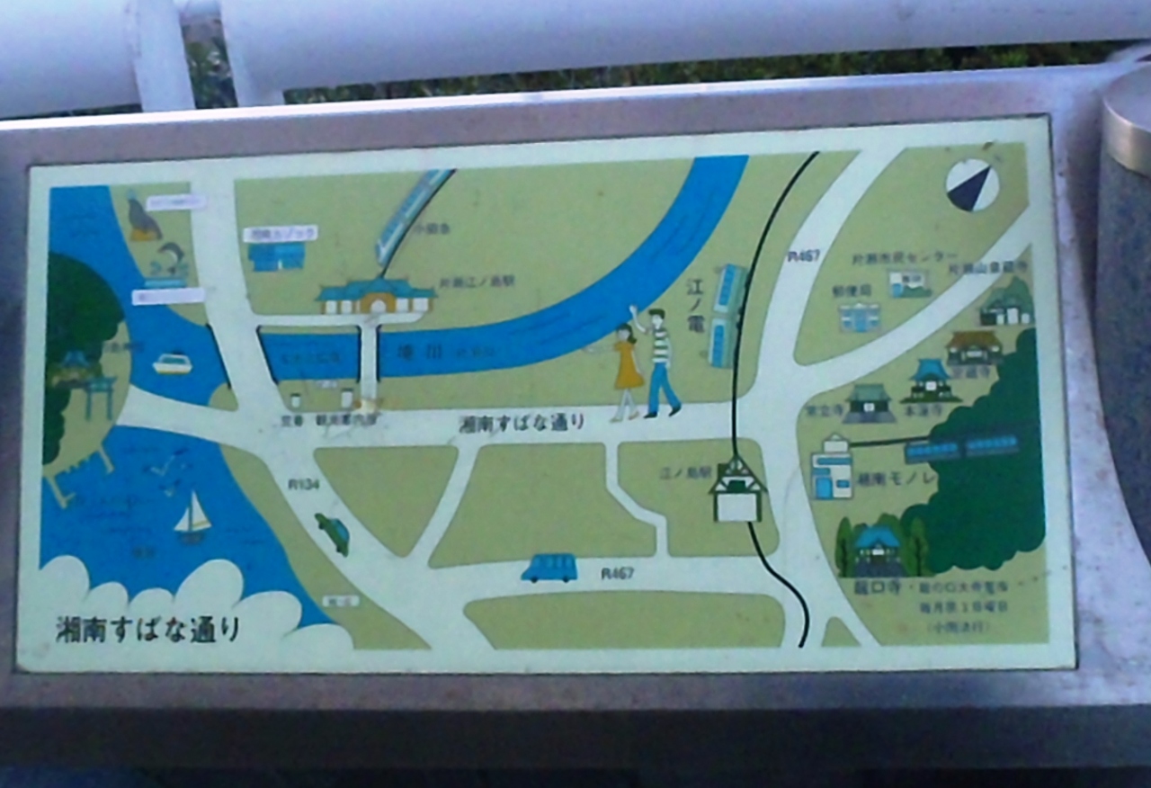 片瀬橋の東側国道134号線の角から弁天橋のふもとにある藤沢市片瀬江の島観光案内所、江ノ電江ノ島駅までに通っている石畳の通りをすばな通りと呼びます。