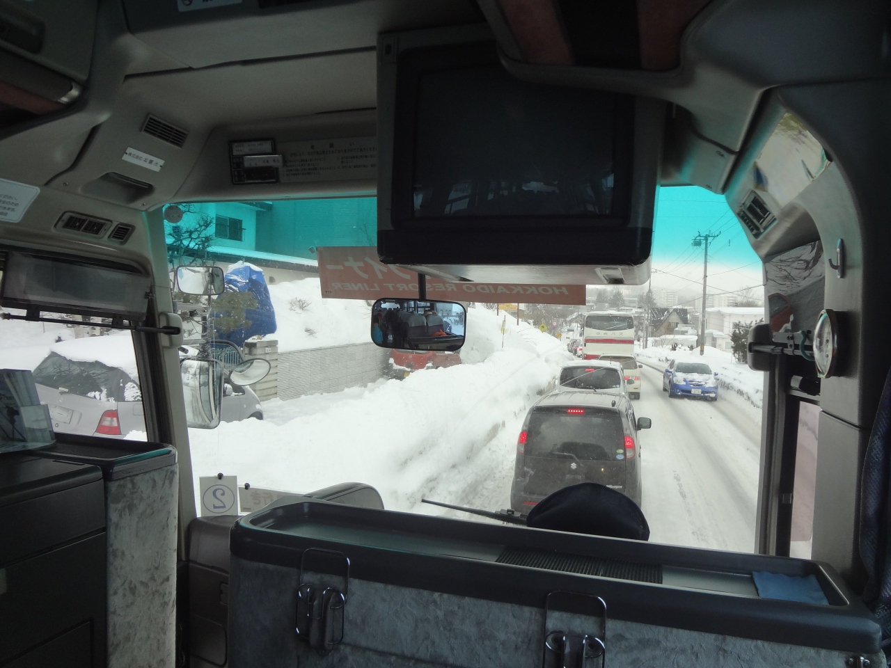 この3月、キロロスキー場に行った際の往復で利用しました。以前にも利用しているので勝手知ったる、という程ではありませんがスムーズに乗ることが出来ました。行きは札幌市内のホテルから乗車。あちこちのホテルを周っていくので高速に乗るまではかなり時間がかかります。それでも順調に行けば10時頃には到着する予定だったのですが、事故で通行止め区間が発生し、ひとつ手前のインターで高速を降り、そこから一般道を走ることに。結局40分くらい遅れての到着となりました。余談ですがスキー場は吹雪でゴンドラをはじめあちこちのリフトの運休状態で、散々な一日でした。
