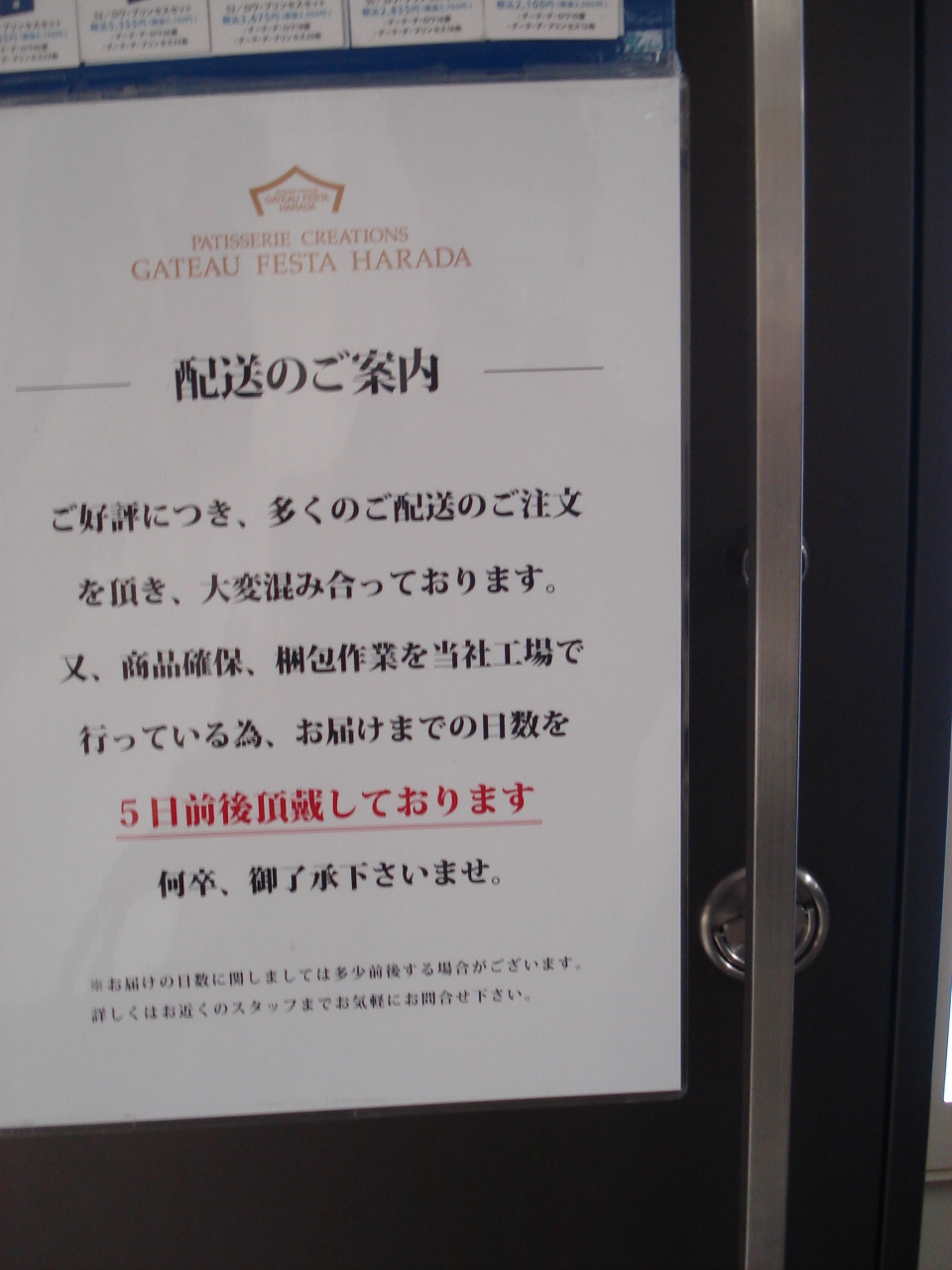 ここで、「配送には5日ほどの猶予を」、と書いてあったので、届けたい日が決まっている人は早めに行く方がいいですよ。