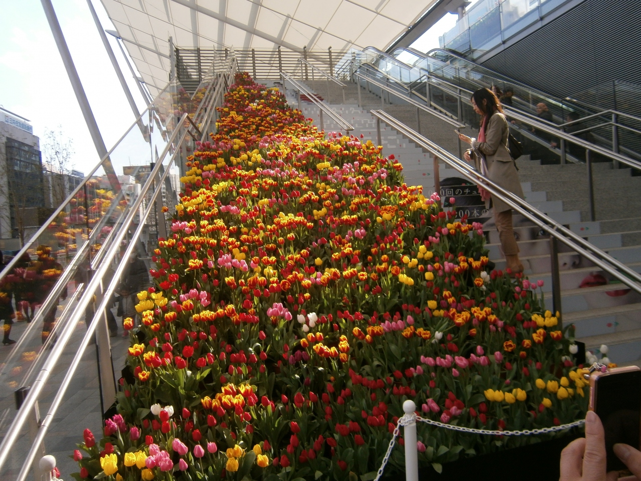 東京駅八重洲中央口を出たところで、一万本のチューリツフ祭りというイベントをやっていました。